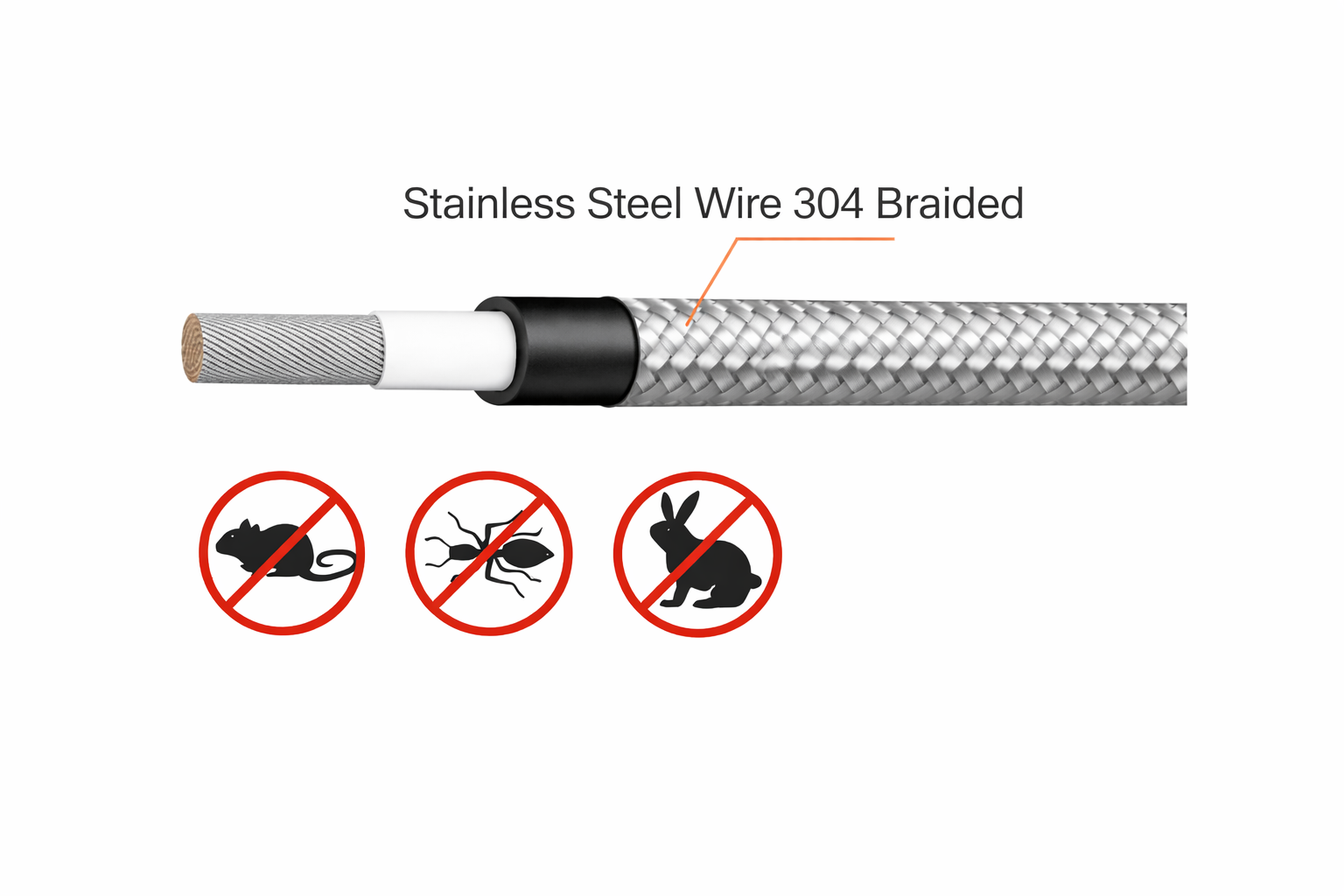 This cable includes a 304 stainless steel braided protective layer, which improves mechanical protection and helps resist damage from mice and ants.